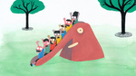 Aaaah! is a cry of pain, surprise, fear, joy, songs, grumbling, laughter, anger… Aaaah! is the expression with which children, these primary and innocent beings, experience life in a community, framed by the whistles of adults.