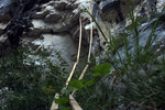 A contemplative walk leads into a bizarre climbing tour. The camera that has just panned over a village scenery now homes in on a construction of wooden slats. From the perspective of the invisible climber, we experience a seemingly impossible ascent.