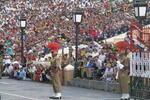 Each night, the only border-crossing between India and Pakistan on a 1000 km stretch becomes the scene of an extraordinary event. Thousands of people gather to witness the ritual closing of the border. The masses get as close to the gate as possible to greet their former neighbours.