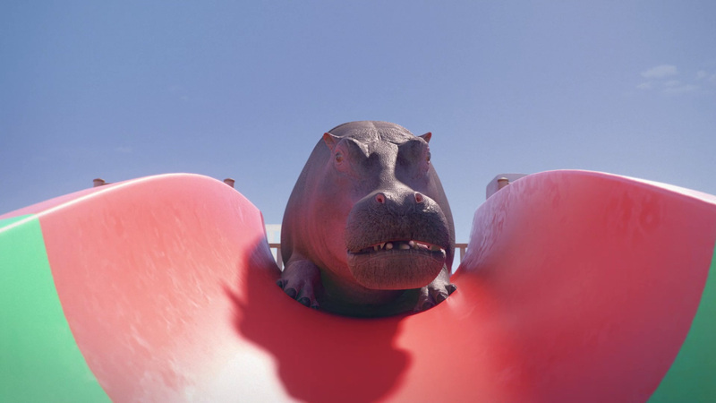 Ein ungeduldiges Nilpferd drängt sich auf die Wasserrutsche. Leider bleibt es mitten im Tunnel stecken – und blockiert die Attraktion für alle anderen.