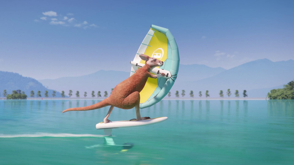 Bei der Wingfoil–Regatta wird sich aller Mittel bedient. Ein kluges Känguru erkennt unsportliches Verhalten auf den ersten Blick und bemüht sich, die Tricks seiner Konkurrenz zu verhindern.