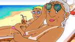Die Seniorinnen Doris und Bettan genießen die steile Sonne am Strand. Oben ohne, rauchend und Cocktails schlürfend. Erst kommt die Beschwerde, danach der Manager. Und dann geht es richtig los. Thelma und Louise reloaded.