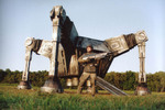 Ein außerirdischer Soldat landet mit seinem Raumschiff auf einer riesigen Waldlichtung, sieht sich von Bäumen umzingelt, springt bis an die Zähne bewaffnet auf die Lichtung und brüllt: "All earthlings surrender!"
