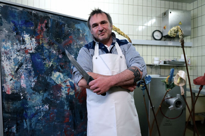 Kurt Pregitzer arbeitet Tag ein Tag aus im eigenen Familienbetrieb als Metzger. Er wurde sozusagen in seinen Beruf hineingeboren. Geplagt von langen Arbeitstagen und monotonen Arbeitsabläufen, hat er sich vor Jahren einen Ausgleich gesucht und gefunden. Er schlüpft Nachts in die Rolle des Künstlers, malt Bilder und kreiert Skulpturen.