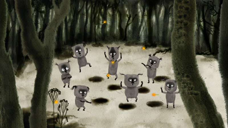 In kleinen Höhlen unter einer Lichtung im Wald lebt eine Gruppe haariger Tierchen. Ihre einzige Nahrung sind leuchtende Früchte, die vom Himmel fallen. Als die Früchte eines Tages ausbleiben, macht sich das mutigste von ihnen auf in den dunklen Wald...